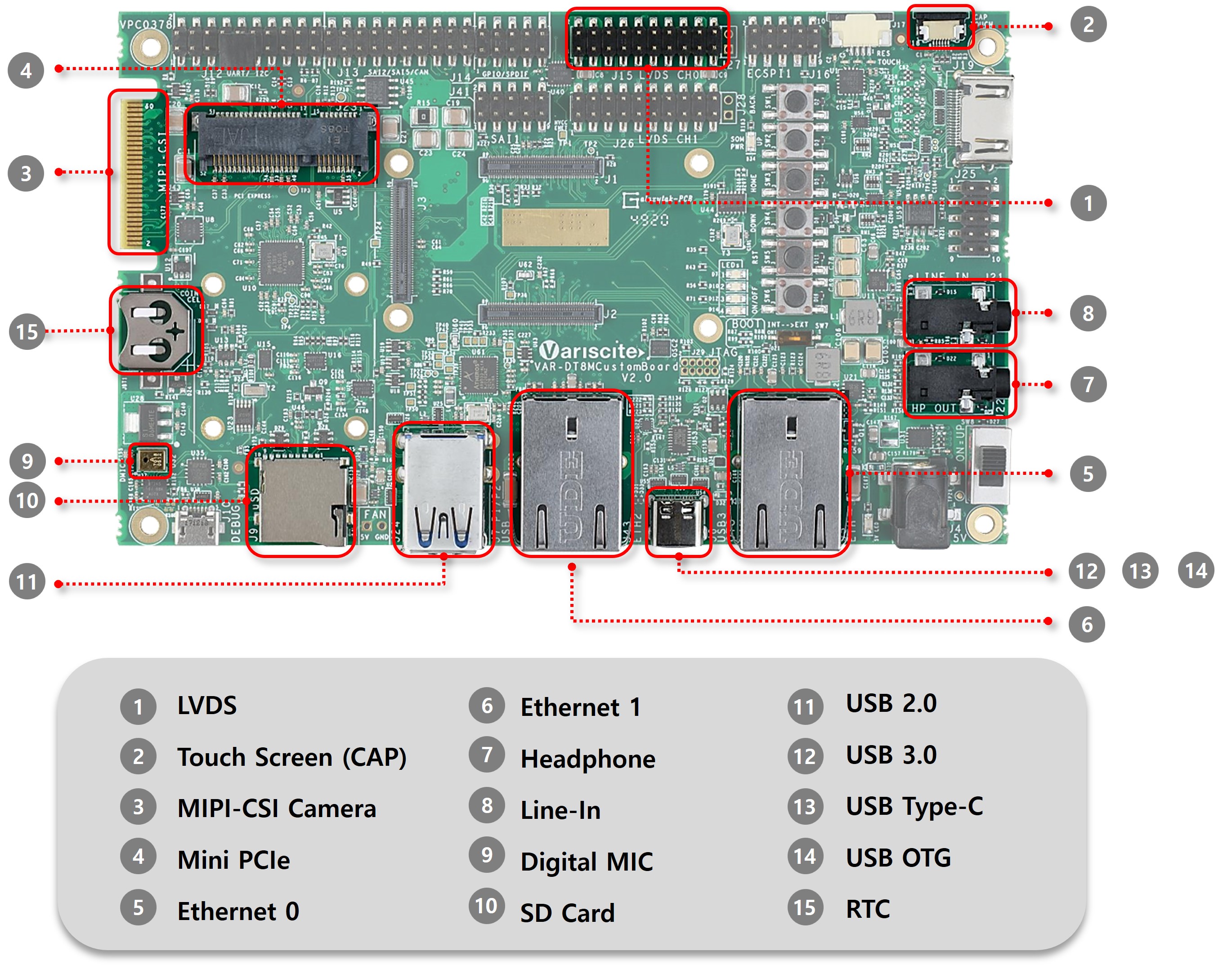 ∙ Debug Cable ∙ Antenna ∙ Boot/Rescue SD Card ∙ Display & Touch Panel ∙ Ethernet Cable ∙ 5V Power Supply ∙ Carrier Board Design Package |