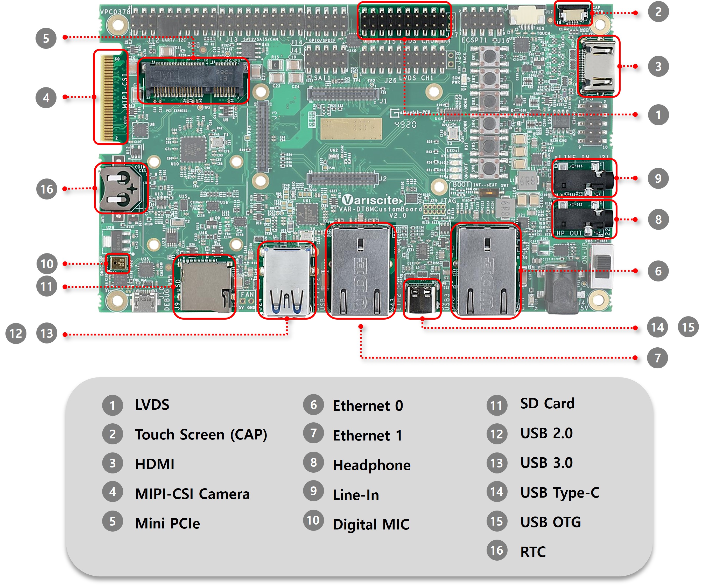 ∙ Debug Cable ∙ Antenna ∙ Boot/Rescue SD Card ∙ Display & Touch Panel ∙ Ethernet Cable ∙ 5V Power Supply ∙ Carrier Board Design Package ∙ Heat sink |