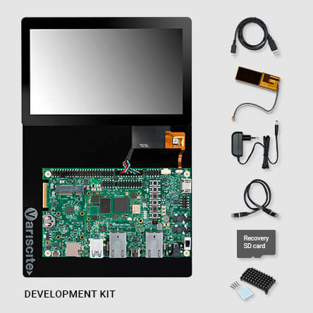 ∙ Debug Cable ∙ Antenna ∙ Boot/Rescue SD Card ∙ Display & Touch Panel ∙ Ethernet Cable ∙ 5V Power Supply ∙ Carrier Board Design Package ∙ Heat sink |